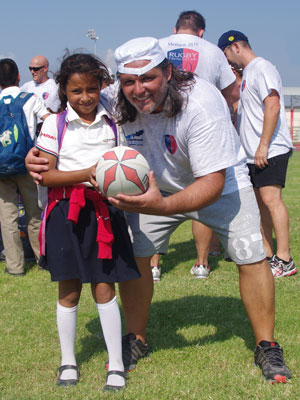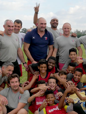 Évidemment, nous emportons aussi dans nos bagages des ballons ovales et du matériel pour la pratique du rugby. Et même si parfois nous devons jouer sur des terrains peu conventionnels, ces moments d'apprentissage sont des occasions d'échanges et de partages exceptionnels.